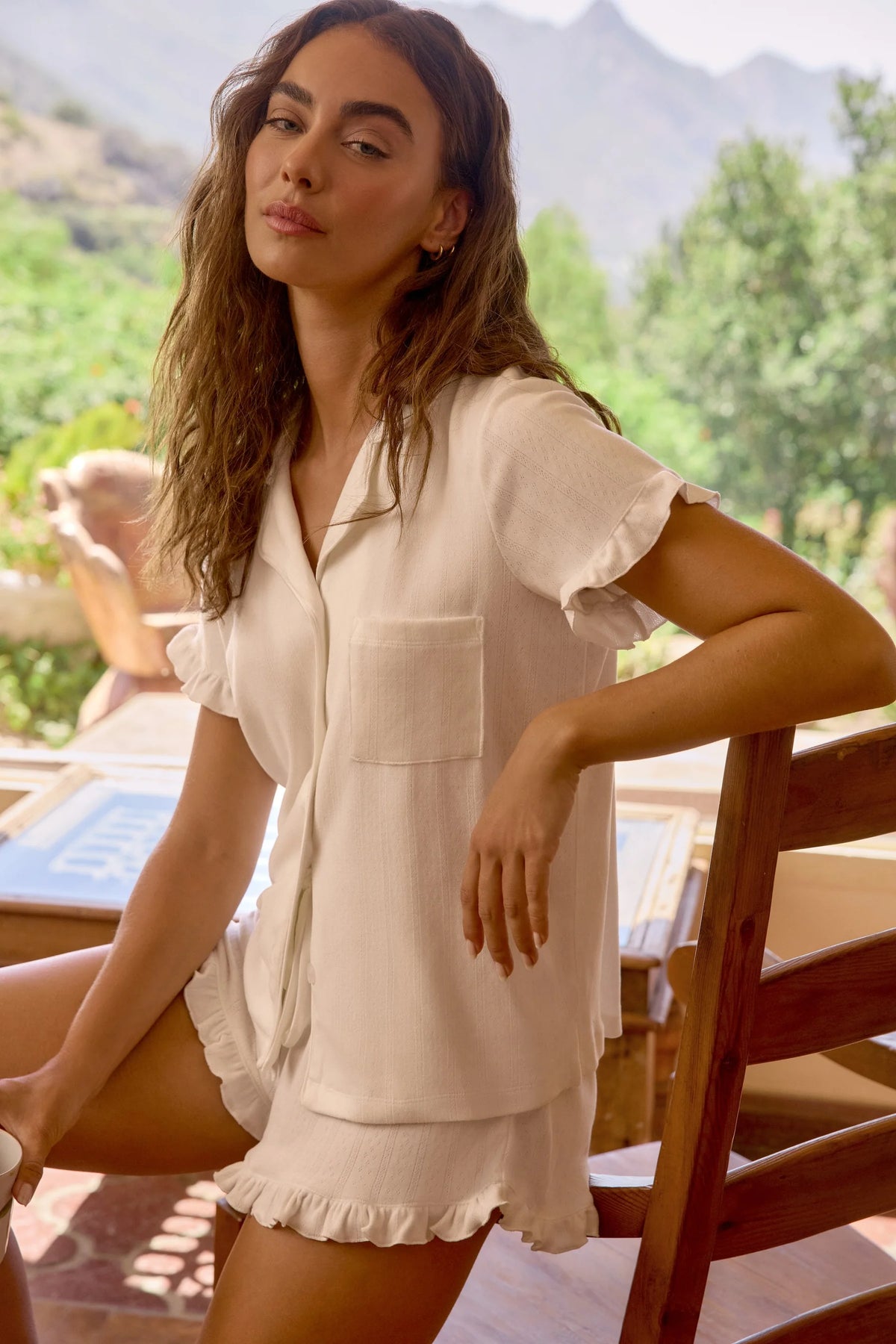 Imagine slipping into these cloud-soft pyjamas after a long day. The airy pointelle fabric feels gentle against your skin, while the relaxed silhouette lets you move freely whether you're unwinding with a book or enjoying a lazy weekend morning. The clean ivory tone brings a sense of calm sophistication to your bedtime routine, and with three versatile pieces, you can mix and match to suit your mood and the season.